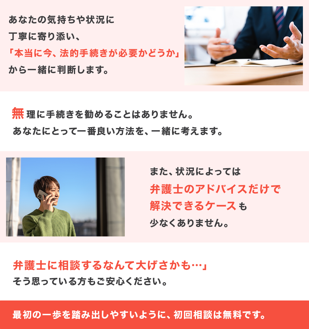 「一刻も早く終わらせたい」という方も安心してご相談ください。